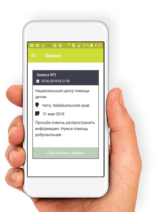 Представителям волонтерских организаций - зарегистрируйтесь и отправляйте заявки в режиме реального времени с Push уведомлениями всем добровольцам вашего города.